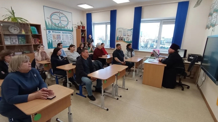 В Салыме священник принял участие в родительском собрании в рамках подготовки к преподаванию курса ОРКСЭ