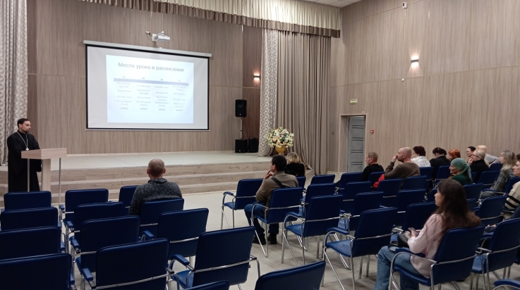 Священнослужитель храма целителя Пантелеимона провел встречу с родителями по выбору модуля ОРКиСЭ