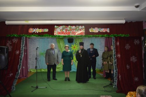 Выступившие на мероприятии глава поселения Овчерюкова Любовь Алексеевна, председатель Думы Ханты-Мансийского района Захаров Петр Николаевич и настоятель храма Преподобного Евфимия Великого д. Шапша иерей Евгений Набоков, поздравили присутствующих с окончанием года и с предстоящими новогодними праздниками.