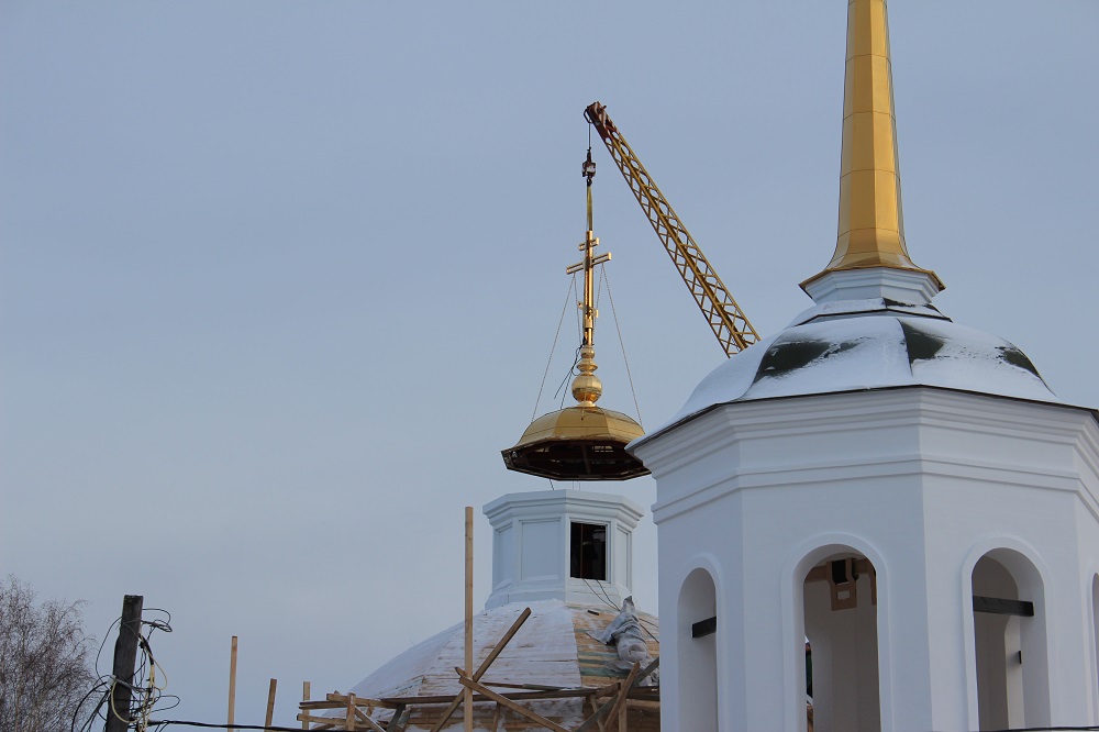 Освящены и установлены кресты и главки храма Вознесения Господня п. Горноправдинск.