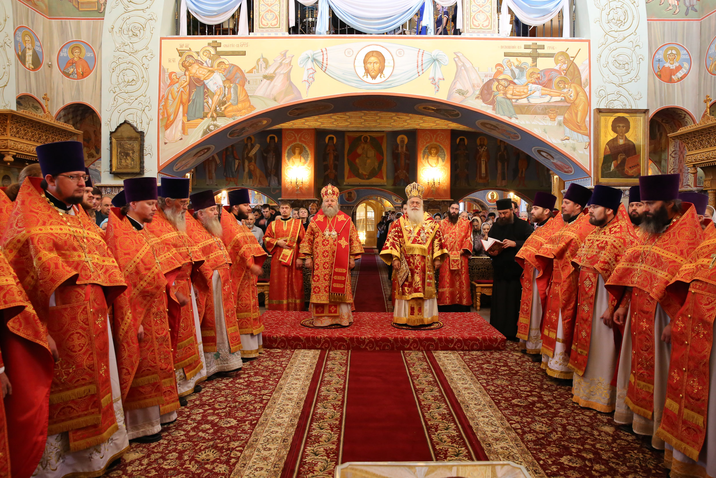Митрополит Ханты-Мансийский и Сургутский, Павел и митрополит Верии, Науссы и Кампании Пантелеимон совершили Божественную литургию в Преображенском кафедральном соборе города Сургута.