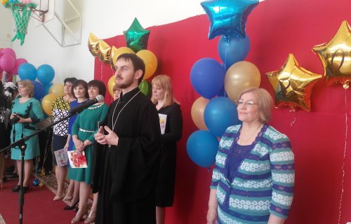 Священник поздравил с юбилеем коллектив и учащихся школы № 1 Излучинска
