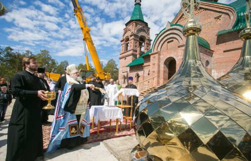 Митрополит Ханты-Мансийский и Сургутский Павел совершил освящение крестов и куполов строящегося храма в честь Благовещения Пресвятой Богородицы п. Нижнесортымский, Сургутского района