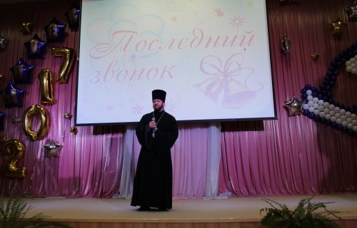 Священник поздравил учащихся 9-х классов средней школы №42 г. Нижневартовска с последним звонком