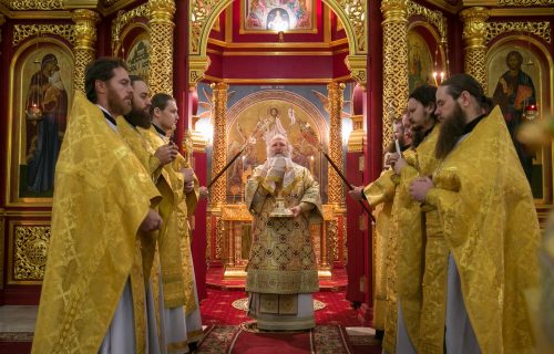 В Неделя 30-ю по Пятидесятнице, пред Рождеством Христовым, святых отец митрополит Ханты-Мансийский и Сургутский Павел совершил Божественную Литургию в Воскресенском кафедральном соборе г. Ханты-Мансийска