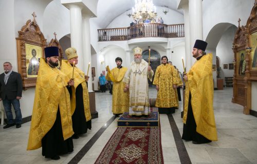 В канун дня памяти ап. Андрея Первозванного, митрополит Ханты-Мансийский и Сургутский Павел совершил вечернее богослужение в храме в честь Покрова Пресвятой Богородицы г. Ханты-Мансийска