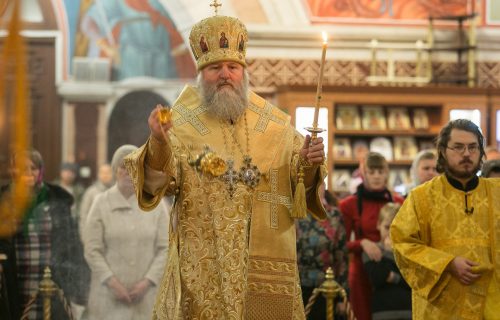 В канун Недели 30-й по Пятидесятнице, пред Рождеством Христовым, святых отец, митрополит Ханты-Мансийский и Сургутский Павел совершил Всенощное бдение в Воскресенском кафедральном соборе г. Ханты-Мансийска