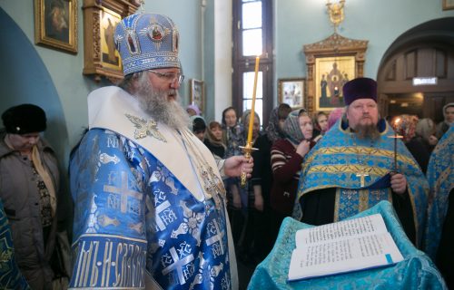 Митрополит Ханты-Мансийский и Сургутский Павел совершил утреню с чтением акафиста Божией Матери в храме в честь иконы Божией Матери «Всех скорбящих Радость» с грошиками г. Сургута