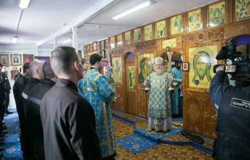В день Похвалы Пресвятой Богородицы, митрополит Ханты-Мансийский и Сургутский Павел совершил Божественную Литургию в храме в честь иконы Божией Матери «Споручницы грешных» исправительной колонии строгого режима № 11 г. Сургута