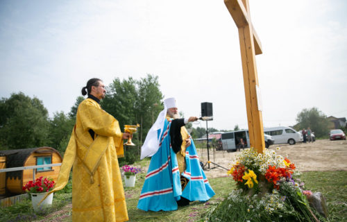 Митрополит Ханты-Мансийский и Сургутский Павел совершил освящение креста и закладного камня на месте строительства храма в честь святых благоверных князей Петра и Февронии Муромских г. Ханты-Мансийска