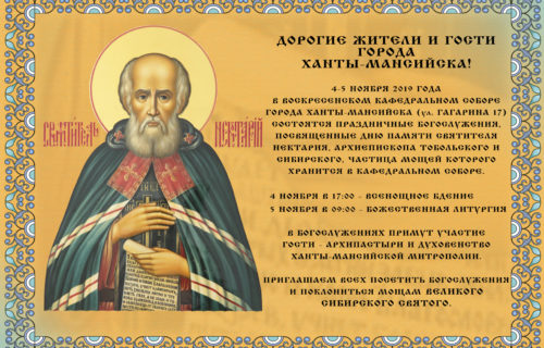 4-5 ноября в Ханты-Мансийске пройдут торжества посвященные дню памяти святителя Нектария Тобольского и Сибирского