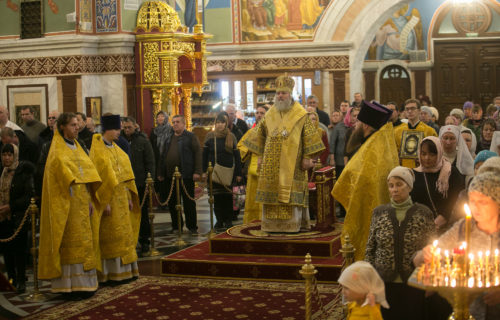 В Неделю 24-ю по Пятидесятнице, митрополит Ханты-Мансийский и Сургутский Павел совершил Божественную Литургию в Воскресенском кафедральном соборе г. Ханты-Мансийска