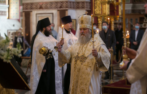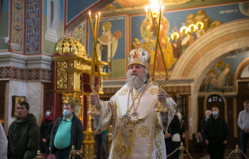 В канун Недели 7-й по Пасхе, святых отцов I Вселенского Собора, митрополит Ханты-Мансийский и Сургутский Павел совершил Всенощное бдение в Воскресенском кафедральном соборе г. Ханты-Мансийска