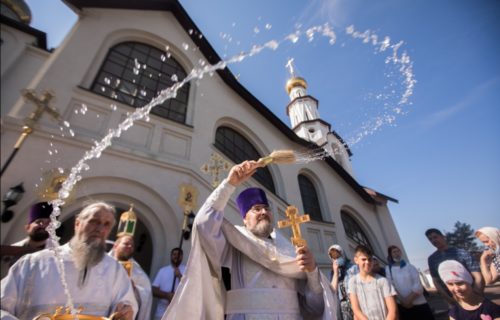 Молебен в день семьи, любви и верности совершили на месте строительства храма в честь святых благоверных князей Петра и Февронии Муромских г. Ханты-Мансийска