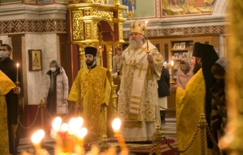 В канун Недели 32-й по Пятидесятнице, митрополит Ханты-Мансийский и Сургутский Павел совершил Всенощное бдение в Воскресенском кафедральном соборе г. Ханты-Мансийска
