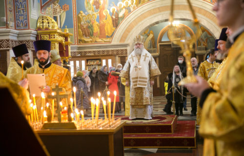 В Неделю мясопустную, о Страшном Суде, митрополит Ханты-Мансийский и Сургутский Павел совершил Божественную литургию в Воскресенском кафедральном соборе г. Ханты-Мансийска