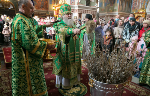 В Неделю ваий митрополит Ханты-Мансийский и Сургутский Павел совершил Божественную литургию в Воскресенском кафедральном соборе г. Ханты-Мансийска