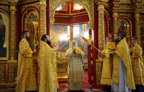 В канун Недели 7-й по Пятидесятнице, Память святых отцов шести Вселенских Соборов, митрополит Ханты-Мансийский и Сургутский Павел совершил Всенощное бдение в Воскресенском кафедральном соборе г. Ханты-Мансийска