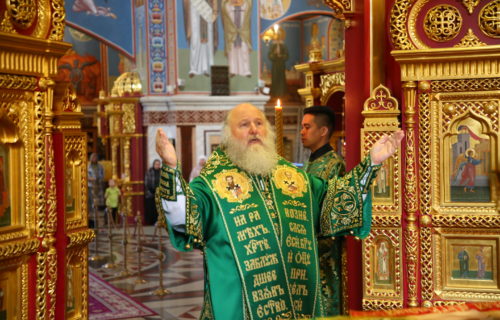 В день обре́тения мощей Прп. Серафима Саровского, чудотворца митрополит Ханты-Мансийский и Сургутский Павел совершил Божественную литургию в Воскресенском кафедральном соборе г. Ханты-Мансийска