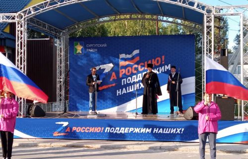 Священник принял участие в мероприятиях Сургутского района, посвящённых Дню российского флага
