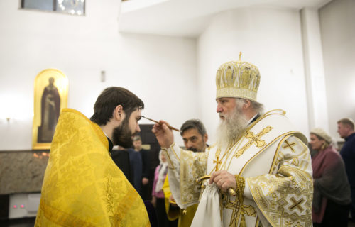 В канун Недели 20-й по Пятидесятнице, митрополит Ханты-Мансийский и Сургутский Павел совершил утреню всенощного бдения в храме в честь мц. Татианы г. Сургута