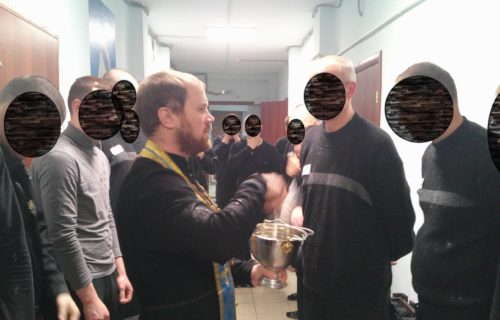 Молебен перед отправкой добровольцев на специальную военную операцию в ИК-15 г. Нижневартовска