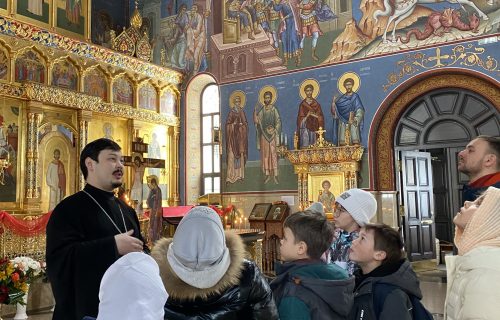 Священник провёл экскурсию по храму в честь великомученика Георгия Победоносца для учеников Сургутской школы № 44
