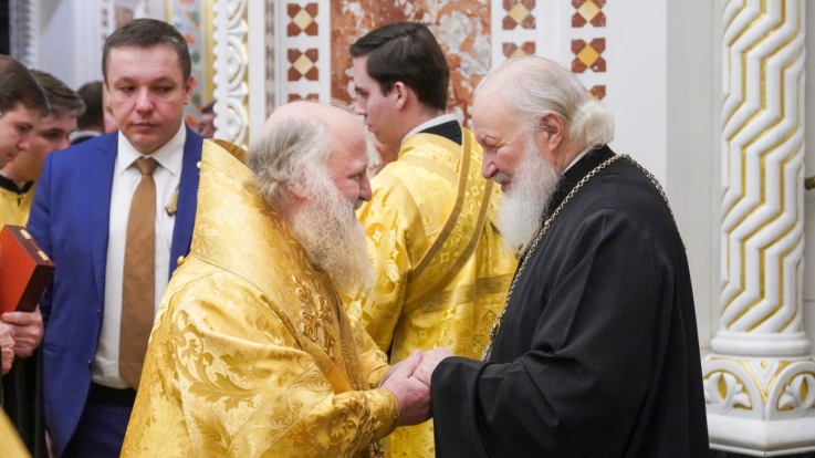 Митрополит Павел сослужил Святейшему Патриарху Кириллу за Божественной литургией в храме Христа Спасителя в шестнадцатую годовщину интронизации Предстоятеля Русской Православной Церкви