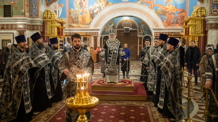 Митрополит Павел совершил Пассию с чтением акафиста Страстям Христовым в Воскресенском кафедральном соборе г. Ханты-Мансийска