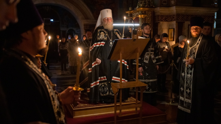 В понедельник первой седмицы Великого поста митрополит Павел совершил повечерие с чтением Великого канона прп. Андрея Критского в Воскресенском кафедральном соборе г. Ханты-Мансийска