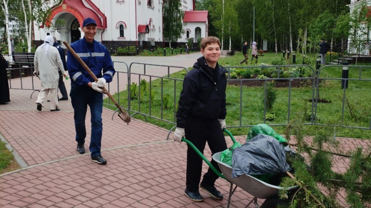 На территории храма вмч. Георгия Победоносца продолжаются работы по озеленению