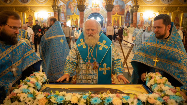 В канун праздника Успения Пресвятой Богородицы митрополит Павел совершил всенощное бдение в храме в честь мц. Татианы г. Когалыма