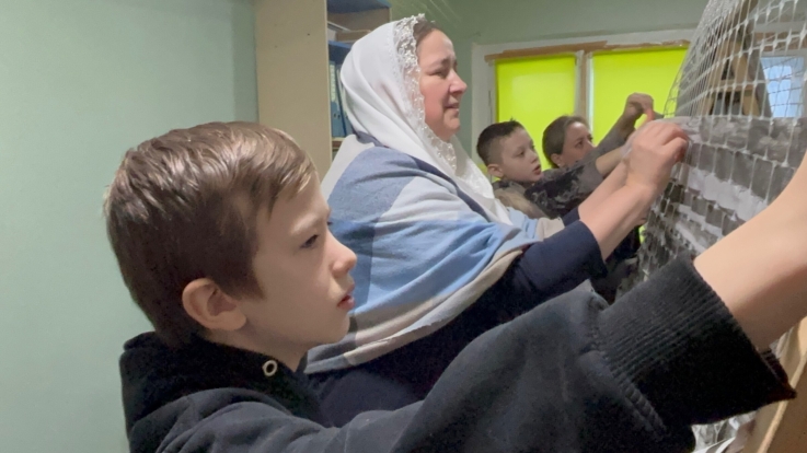 Маскировочные сети плетут в воскресной школе храма Архистратига Михаила г.Нефтеюганска