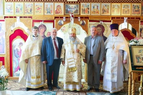- Владыке сослужили благочинный Ханты-Мансийского благочиния протоиерей Сергий Кравцов, трудами которого начиналось возрождение Вознесенского храма, ключарь Воскресенского Кафедрального Собора иерей Сергий Нагорный, настоятель храма Вознесения Горноправдинска иерей Евгений Кизин, настоятель храма поселка Приполярный иерей Артемий Куринной, духовенство епархии.