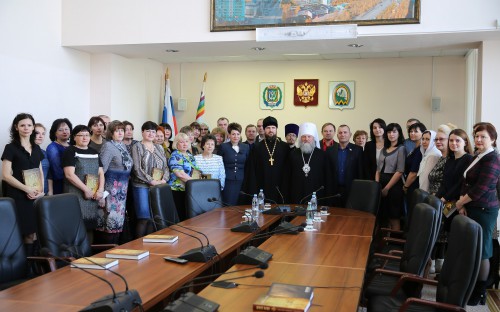 По окончанию совещания митрополит Павел вручил всем педагогом книгу «Закон Божий», автор священник Даниил Сысоев.