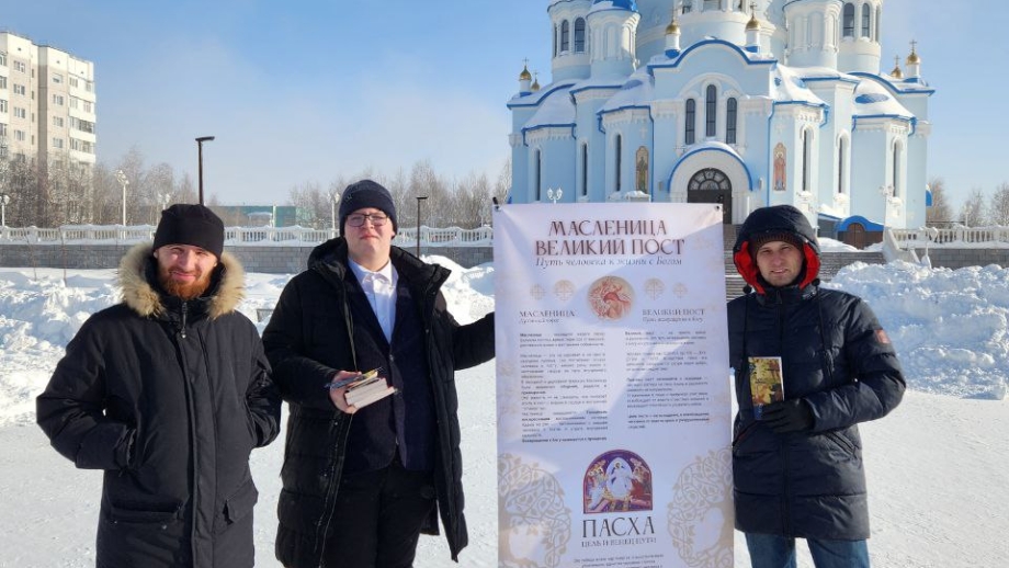 В минувшее воскресенье молодёжным движением храма Георгия Победоносца и Свято-Троицкого кафедрального собора города Сургута была проведена миссионерская акция, организована раздача миссионерских буклетов «Масленица – Великий пост», Евангелий, а также представлены информационные стенды с текстами о Масленице и Великом посте.