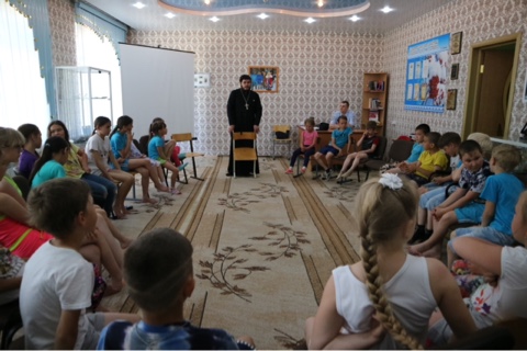 19 июня священник храма Покрова Божией Матери г. Покачи иерей Федор Максимов, совместно с инспектором по делам несовершеннолетних отдела полиции № 3 МО МВД России «Нижневартовский» Соколенко Н.В., провел беседу с воспитанниками детского лагеря с дневным пребыванием детей при средней школе п. Аган.
