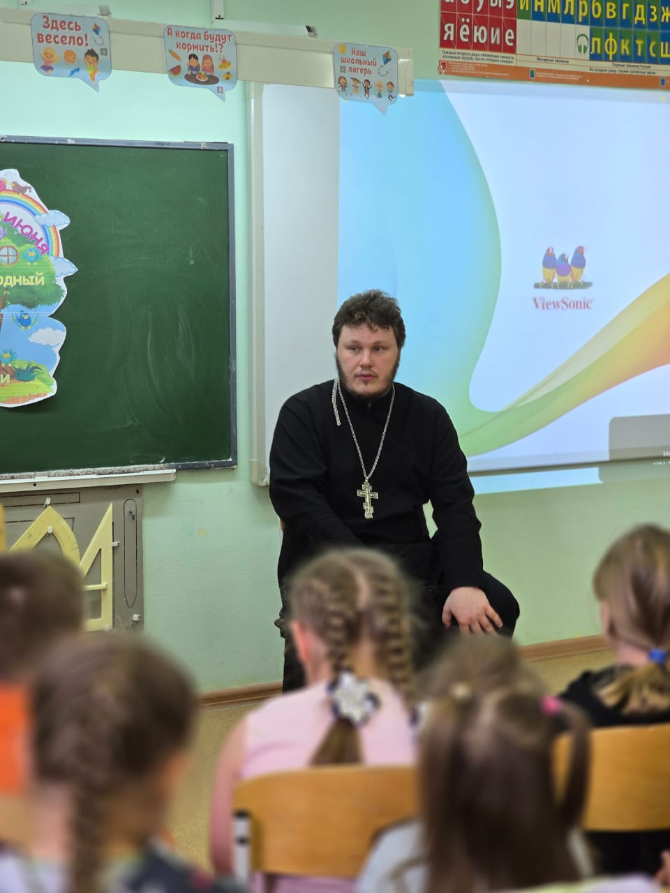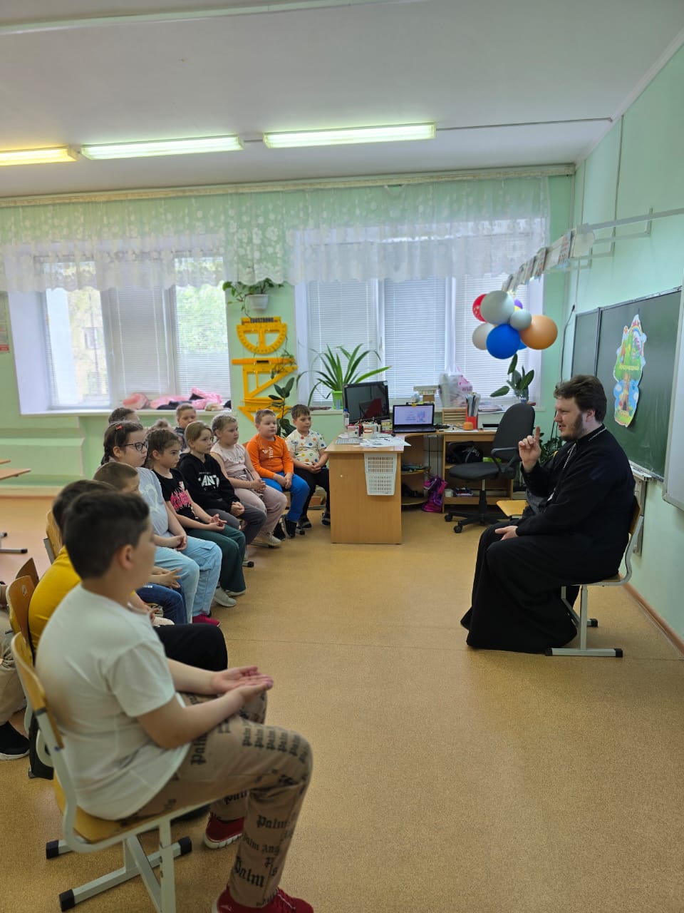 07.06.2025г. клирик храма святителя Николая Чудотворца пгт. Излучинск иерей Никита Скрябин посетил воспитанников пришкольного лагеря с дневным пребыванием «Летний калейдоскоп» Ларьякской средней школы. Священник вместе с ребятами говорил о предстоящем празднике Святой Троицы. Дети активно участвовали в беседе и задавали вопросы.