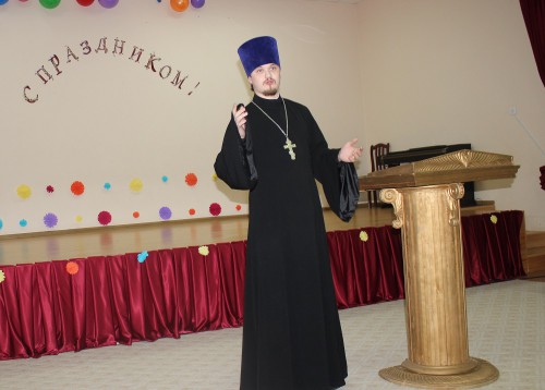 Также к родителям обратился настоятель храма Вознесения Господня, иерей Евгений Кизин. Батюшка пояснил, что модуль «Основы Православной Культуры» является культурологическим и имеет своей первоочередной целью ознакомление детей с богатейшей культурой Православия, тесно переплетенной с историей нашего Российского государства.