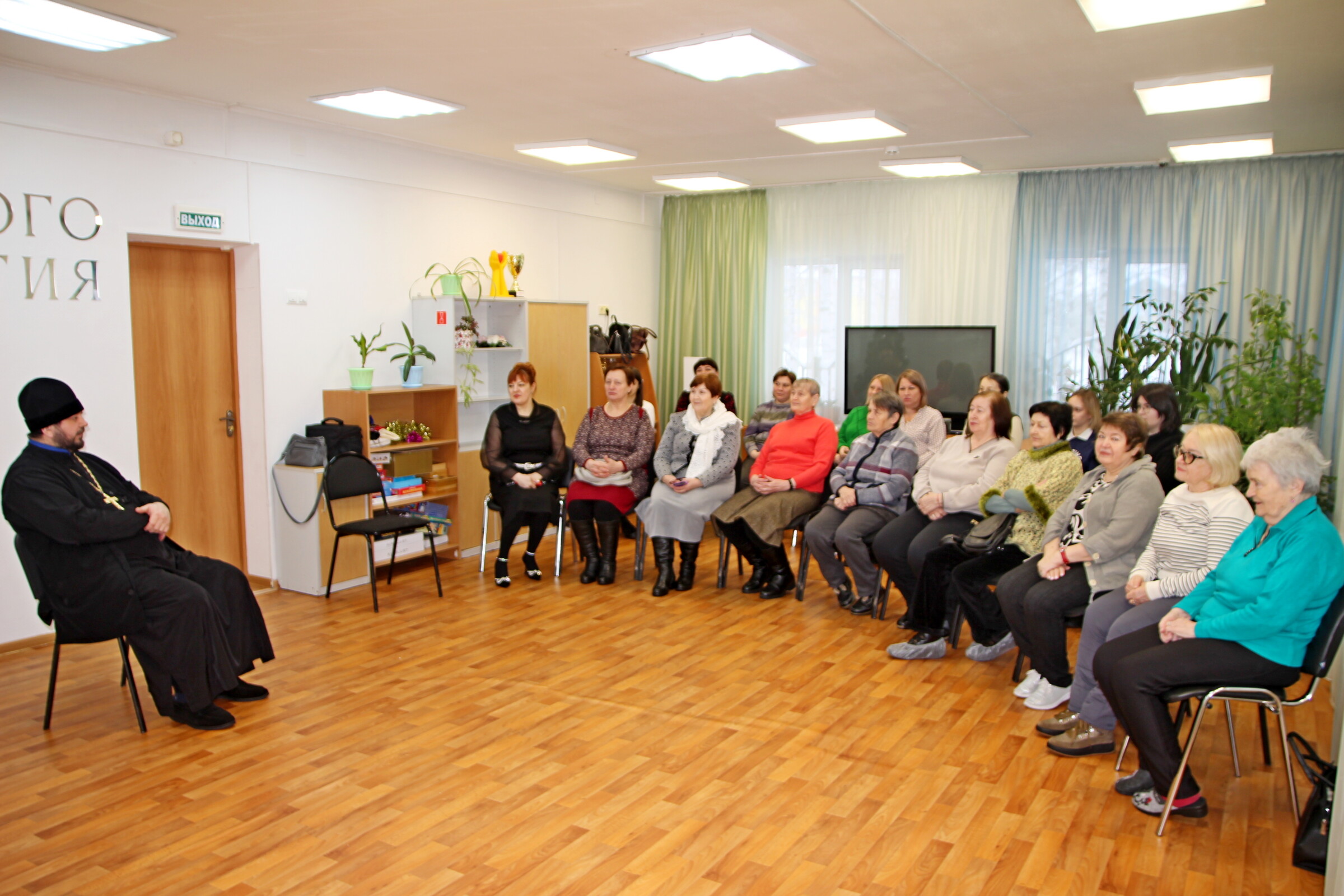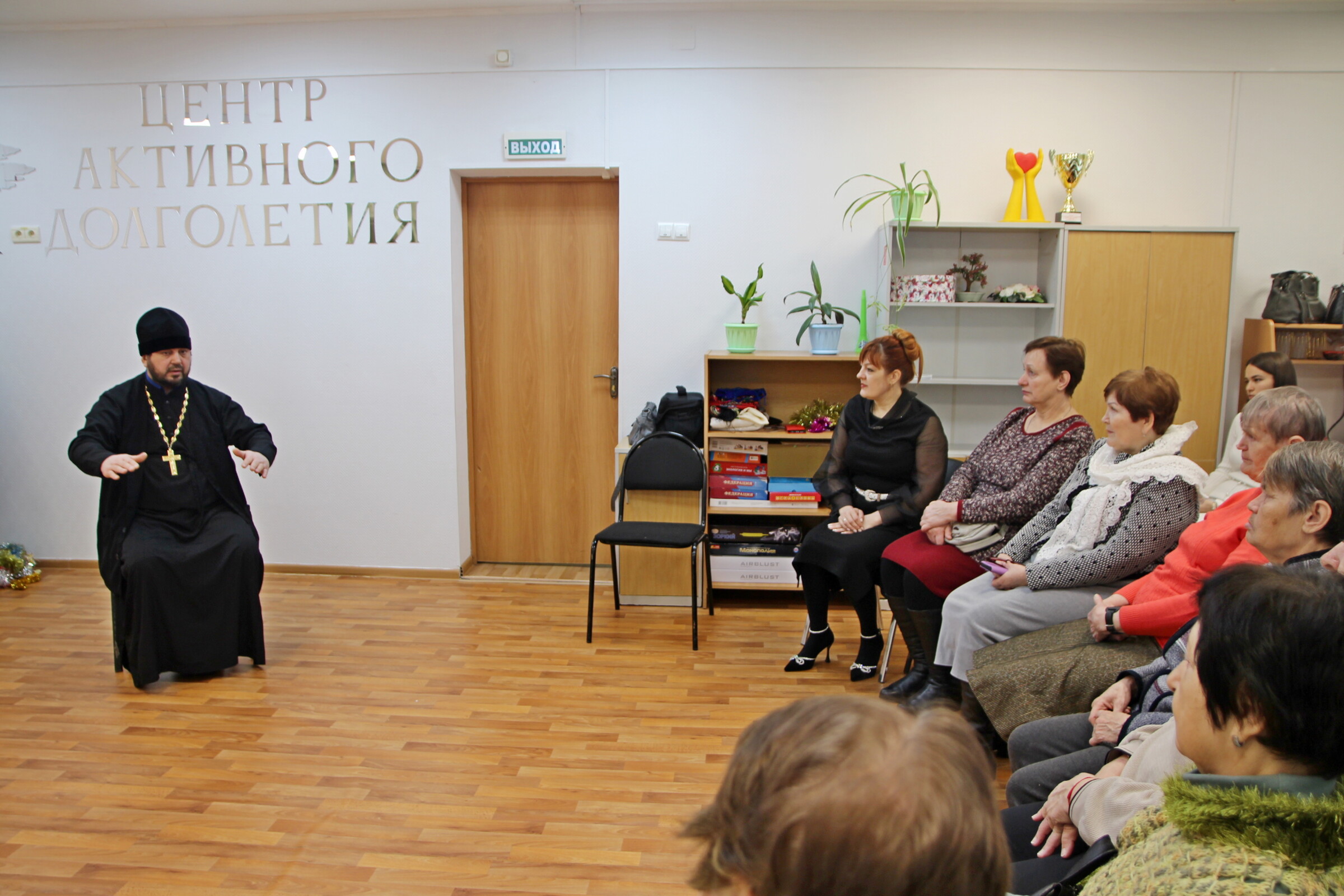 В теплой беседе отец Иоанн поздравил всех, поблагодарил Бога за такое теплое отношение, внимание и любовь к пожилым людям в реабилитационном центре, высказал в адрес пожилых людей слова утешения, ободрения, в ходе беседы он ответил на многочисленные вопросы.