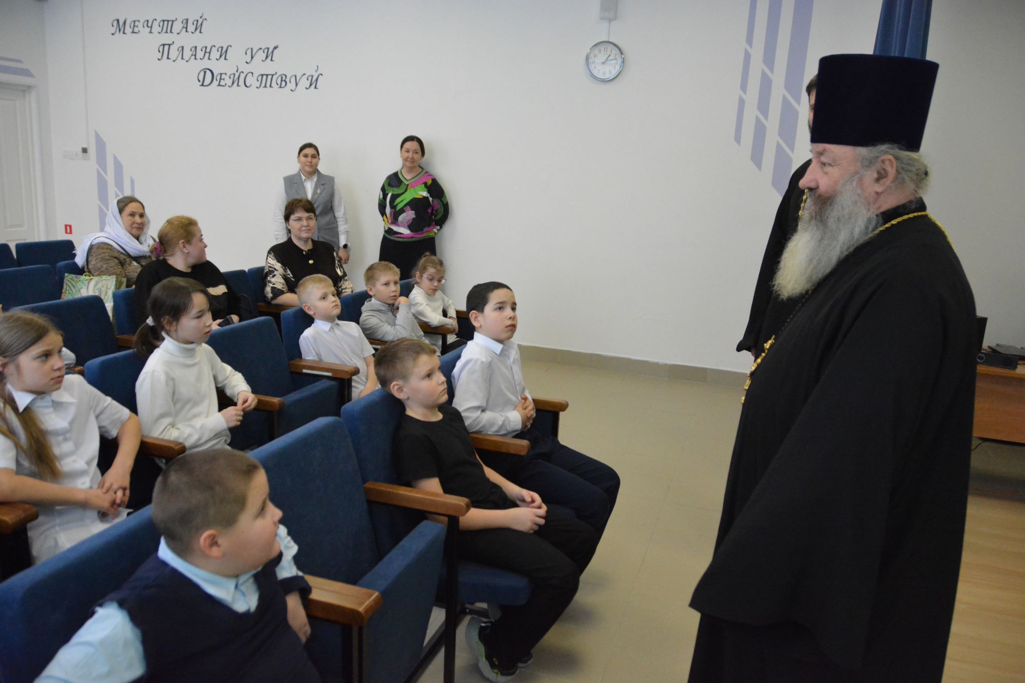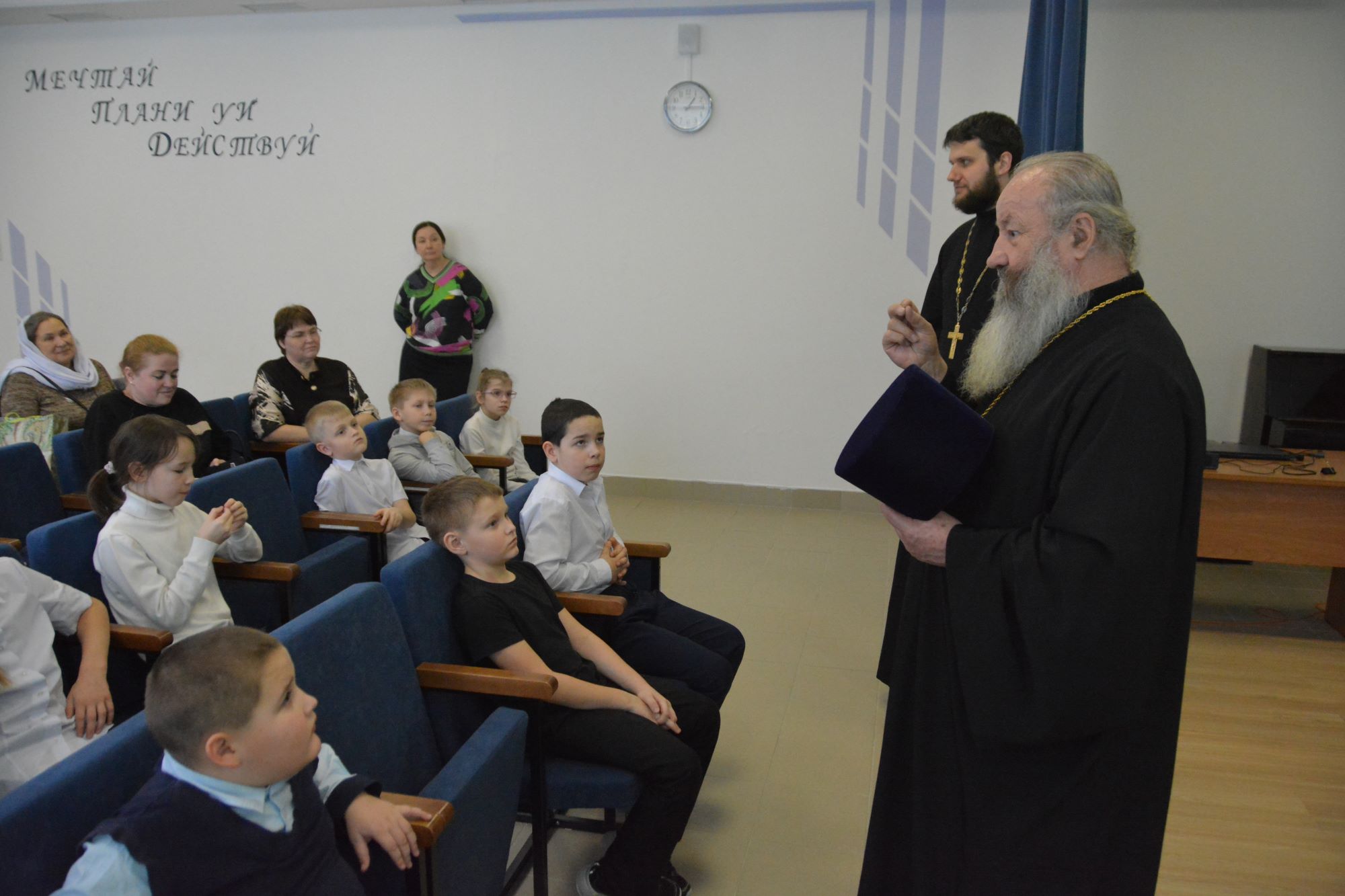 18 февраля 2026 года благочинный Нефтеюганского благочиния, настоятель прихода храма Святого Духа протоиерей Николай Матвийчук и иерей Георгий Полуянов посетили школу в поселке Высокий Мыс, где провели беседу с обучающимися. Отец Николай рассказал ребятам о составных частях человеческой души и о важности сохранения её чистоты. Отец Георгий рассказал о важности соблюдения заповедей Божиих, о силе покаяния и прощения. Дети с удовольствием включились в импровизированную игру с делением на две команды и было видно неподдельное внимание и интерес к теме разговора. После беседы с детьми батюшкам провели экскурсию по школе, показали интересные экспозиции школьного музея. Отец Николай за чашкой чая рассказал представителям школы о том, как велись работы по восстановлению и освящению храма в сельском поселении Тундрино в 90-е годы и выразил надежду на продолжение плодотворного сотрудничества.