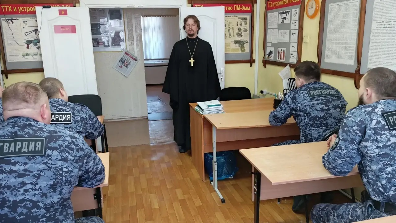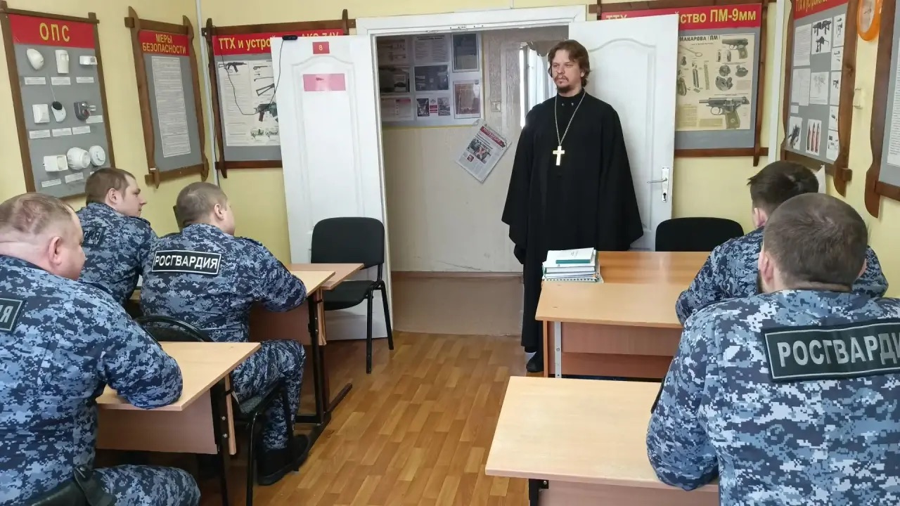 19 марта 2026 в штабе отдела Россгварди ОВО г Лангепас состоялась встреча православного священника с личным оставим Отдела. Встречу провел благочинный Лангепасского благочиния, настоятель прихода храма в честь иконы Божией Матери «Всех скорбящих Радость» города Лангепаса иерей Евгений Чебыкин.