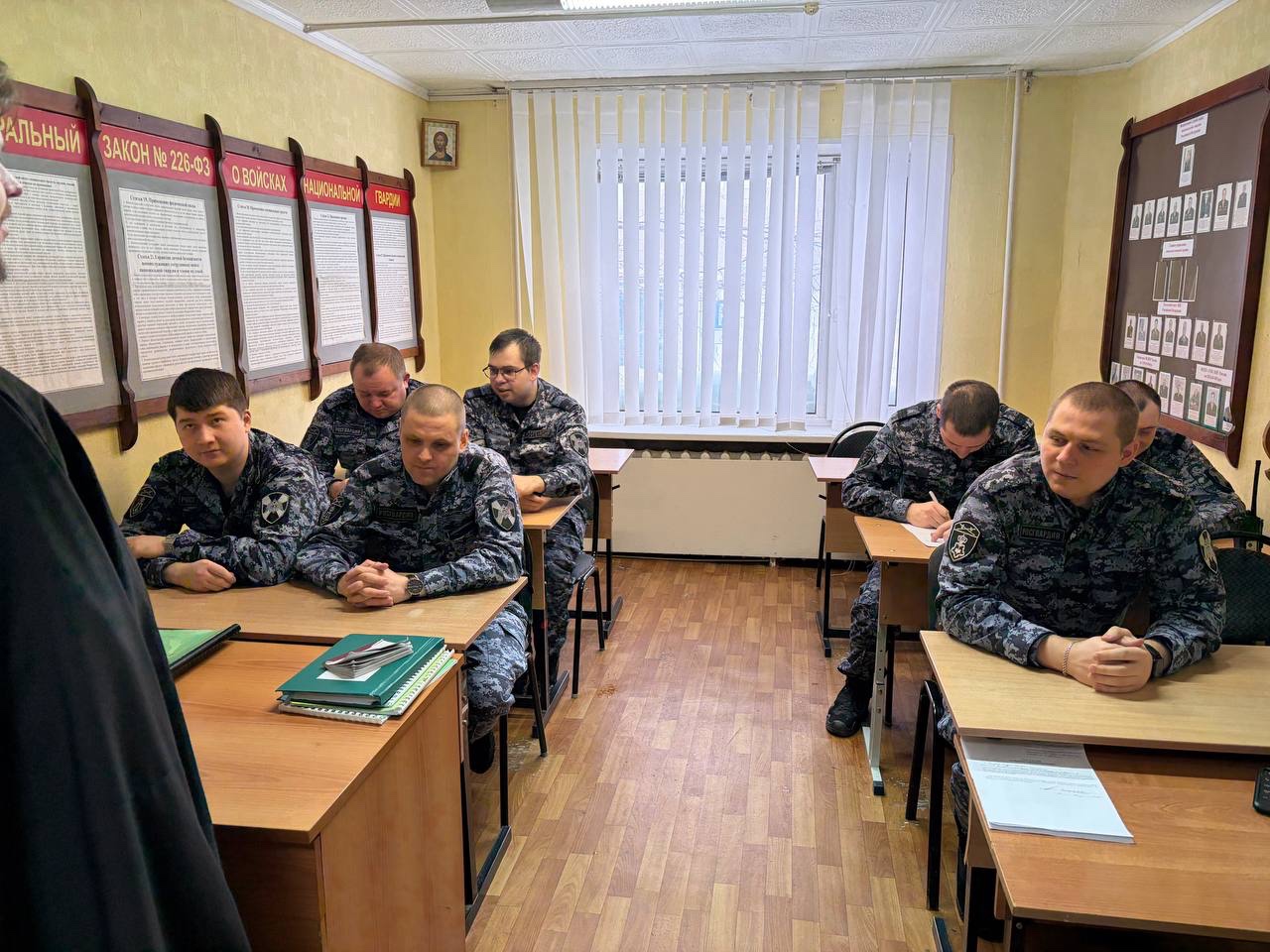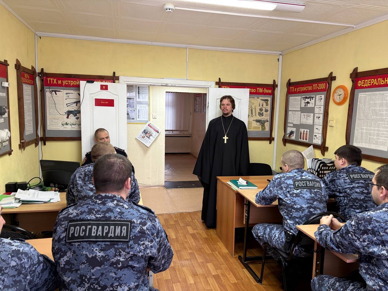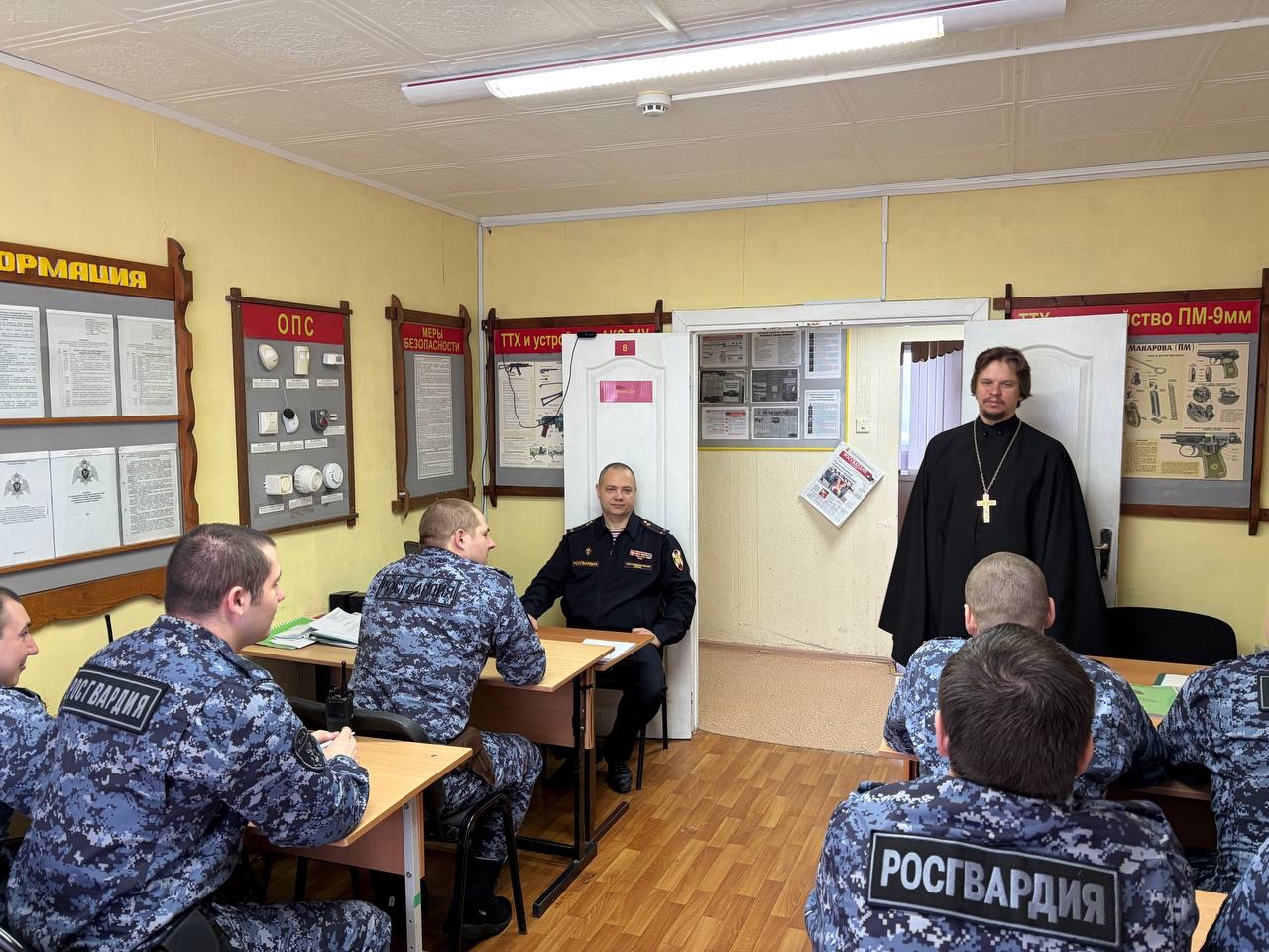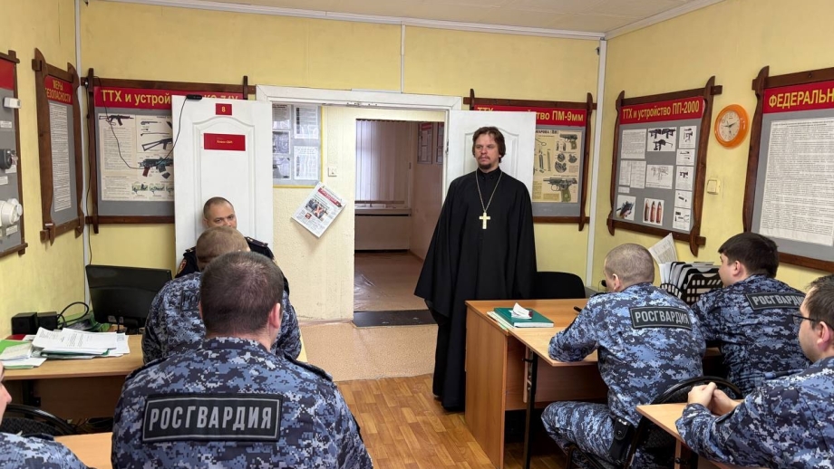 18 февраля 2026 в штабе отдела Россгварди ОВО г Лангепас состоялась встреча православного священника с личным оставим отдела. Встречу провел благочинный Лангепасского благочиния, настоятель прихода храма в честь иконы Божией Матери «Всех скорбящих Радость» города Лангепаса иерей Евгений Чебыкин.