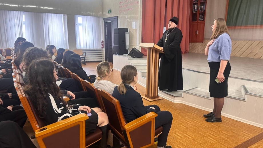 18 февраля 2025 года в Лангепасском городском автономном общеобразовательном учреждении «Средняя общеобразовательная школа №5» состоялась беседа настоятеля храма святителя Спиридона Тримифунтского г. Лангепаса иерея Николая Спамбетова и диакона храма в честь иконы Божией Матери «Всех скорбящих Радость» города Лангепаса Александра Курилова с учащимися 9 классов.