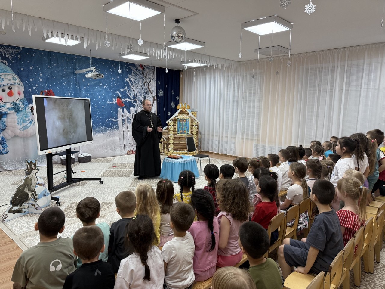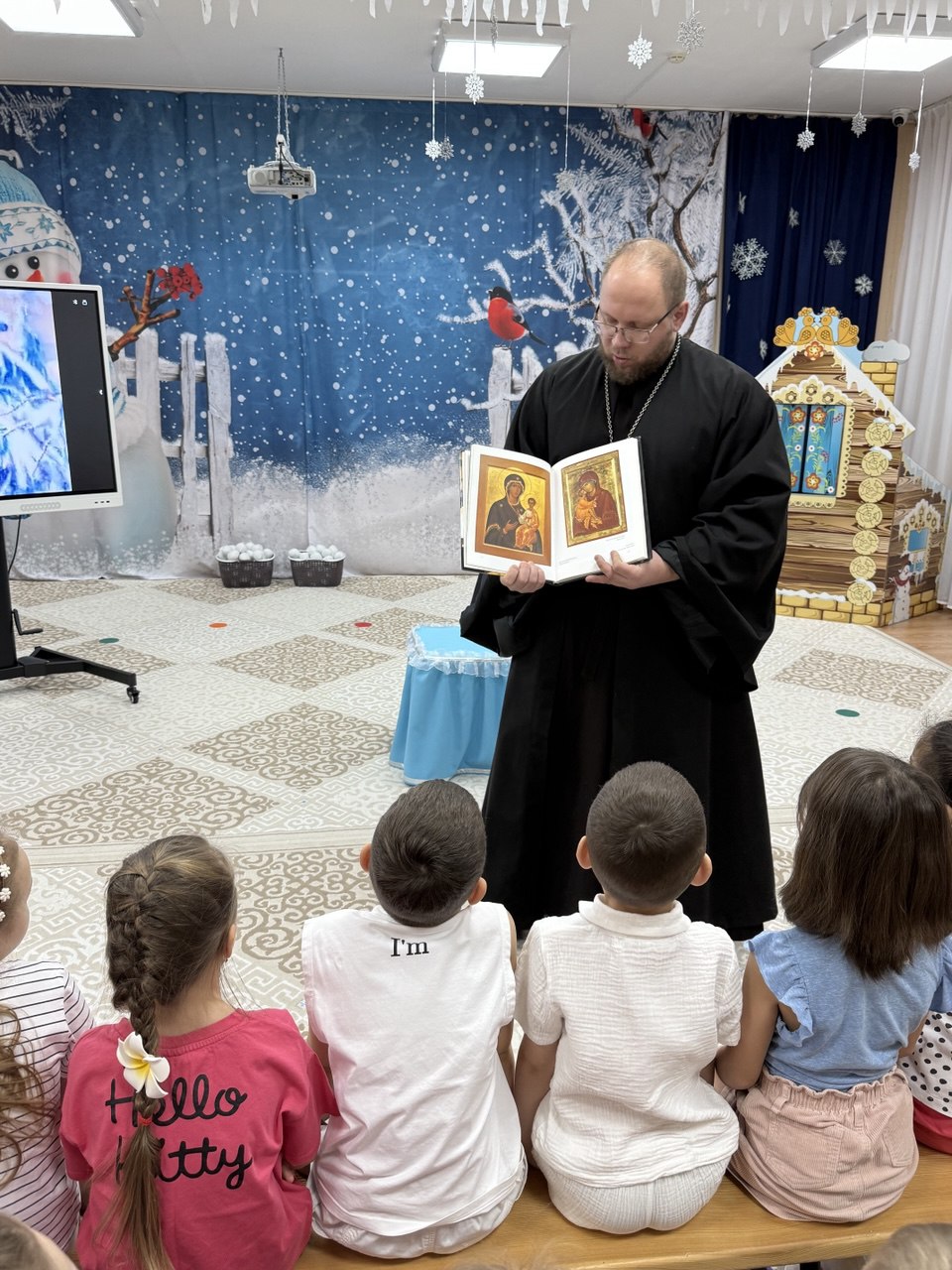 19 января 2026 года — в МДОУ 31 «Снегирек», включающий 2 корпуса, посетил клирик Собора Преображения Господня г. Сургута иерей Сергий Мартынюк с беседами в первом и втором корпусе в 3-х группах по теме » О Рождестве Христовом и Крещении Господнем.