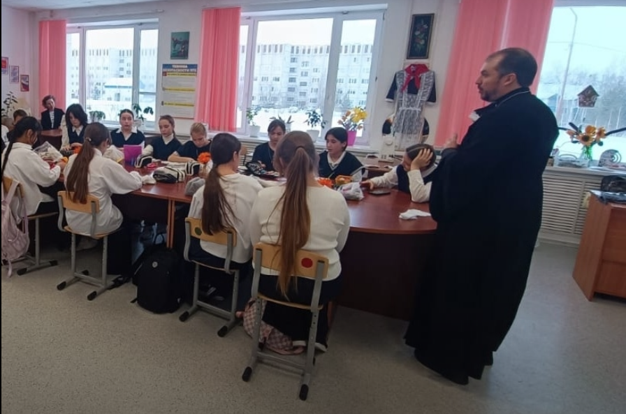 В городе Лянторе, в школе №7 состоялись две встречи обучающихся с отцом Кириллом Сысоевым, посвящённая «Дню Матери».