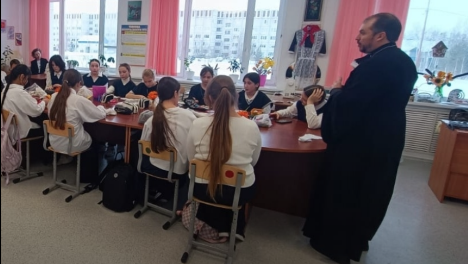 В городе Лянторе, в школе №7 состоялись две встречи обучающихся с отцом Кириллом Сысоевым, посвящённая «Дню Матери».