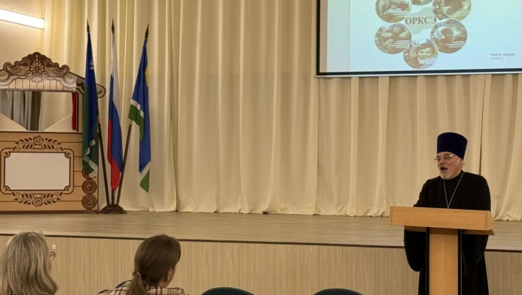 Священнослужитель г. Лангепаса принял участие в родительском собрании СОШ №1 по выбору модуля ОРКСЭ.