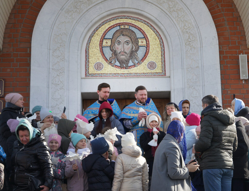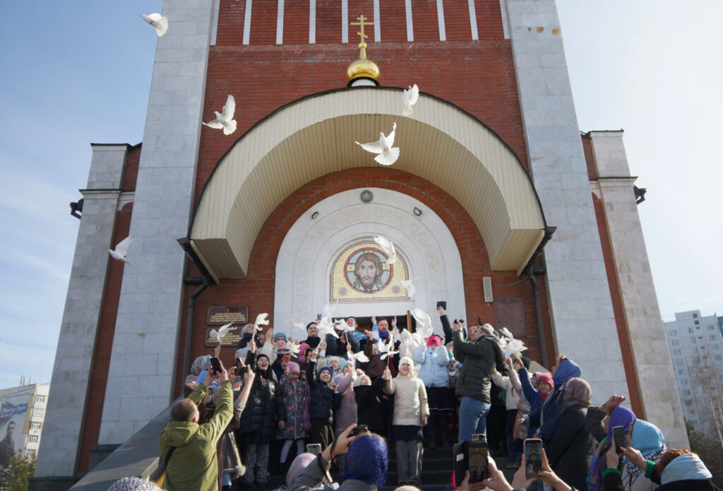 7 апреля 2026 года православные верующие Нижневартовска пережили уникальное в богослужебном календаре совпадение: Великий вторник Страстной седмицы ознаменовался великим двунадесятым праздником – Благовещением Пресвятой Богородицы. В этот день, несмотря на строгость предпасхальных приготовлений, во всех храмах Нижневартовского городского благочиния была совершена праздничная Божественная литургия святителя Иоанна Златоуста. Духовенство и миряне собрались, чтобы почтить память явления Архангела Гавриила Деве Марии, соединяя радость о начале спасения рода человеческого с благоговейным предстоянием Крестному пути Спасителя. В богослужении в храме Рождества Христова принимали участие воспитанники и преподавательский состав Нижневартовской православной гимназии. Юные гимназисты, облаченные в праздничную форму, наполнили храм стройным пением хора и трепетной молитвой. Почти все учащиеся сподобились причаститься Святых Христовых Тайн, соединившись с Господом в канун Его спасительных страданий. Богослужебные прошения в этот день звучали особенно проникновенно. На мирной и сугубой ектениях клириками храма были вознесены сугубые молитвы о Российском воинстве и о даровании мира. По завершении Литургии духовенство, гимназисты и прихожане вышли на паперть храма, где по древней православной традиции, связанной с праздником Благовещения, в небо были выпущены белые голуби. Парящие в прохладном весеннем воздухе птицы стали живым символом свободы духа, благой вести и стремления человеческой души к Небесному Отцу, служа утешением в покаянные дни Страстной седмицы.