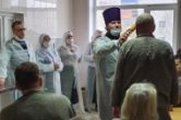 В эти праздничные дни каждому христианину важно помнить о ближних, которые находятся в трудной жизненной ситуации, кого, возможно, некому поздравить и поддержать. Батюшка рассказал присутствующим о самом главном празднике православных христиан ПАСХЕ – СВЕТЛОМ ХРИСТОВОМ ВОСКРЕСЕНИИ. Волонтёр общества ТРЕЗВЕНИЕ Евтушенко Владимир пригласил всех желающих в группу по преодолению алкогольной и других зависимостей «12 шагов», руководителем которой он является. Сестры милосердия раздали пасхальные угощения пациентам больницы, после чего все вместе пропели пасхальные песнопения. В завершении встречи, иерей Сергий окропил всех святой водой и произнес напутственные слова для подопечных.